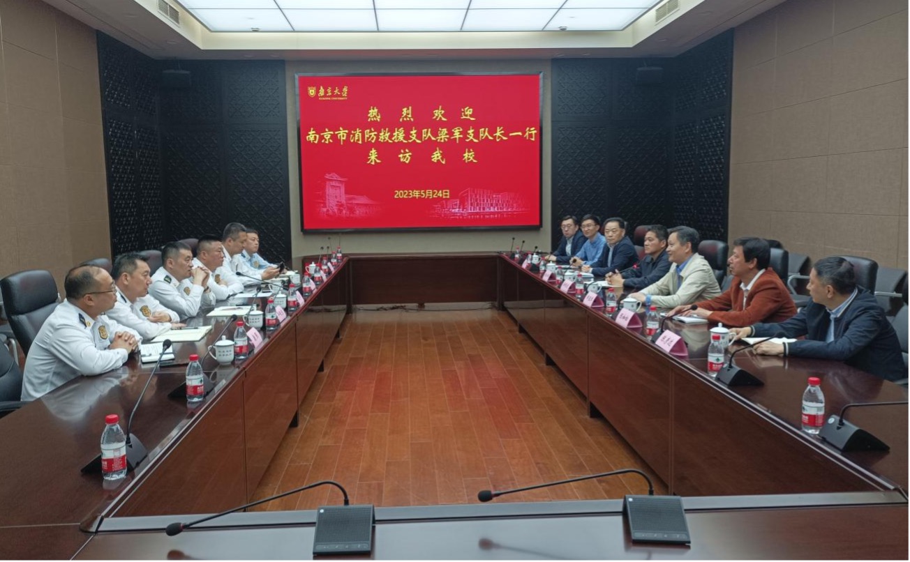 支队长梁军向邹亚军副校长介绍了消防救援支队的组织架构和管理模式,以及消防救援部门的主要职能。对于高校消防安全,梁军说要针对高校教学工作的特点,针对性地制订消防管理和应急救援制度。他重点强调了实验室等重点部位的消防管理,要秉持不出现亡人事故,不出现重大舆情的原则,将校园消防工作做深做细;一定要做好火灾预防工作,做到"少出事,不出大事,尽量不亡人";要针对不同院系楼宇的功能特点,针对性地做好防火工作。对鼓楼校区的传统老建筑,有些消防硬件条件不达标的,不要拘泥于现有的防火规范,而要量身定制地为其制订防火制度和消防要求;在灭火方面,要做好微型消防站建设和院系单位灭火力量的培训,院系单位要学会"自救",尽量把火灾消灭在萌芽阶段;在火灾初期要尽快疏散人员,建立起一支"火灾前5分钟"的灭火力量;要做到"小投入、大效用",并将消防安全责任切实落实到各院系单位。最后,梁军总结说,消防工作不是简单的"查、罚、关",不是单纯的监督,更多的是与被检查单位的通力合作与深入指导,才能做好高校消防安全管理工作。
