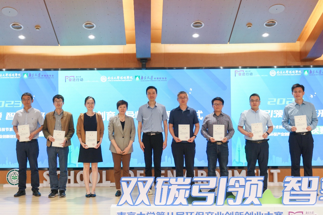 环境学院党委书记刘建萍和党委学生工作部副部长兼本科生院学生思想政治教育中心主任闻羽为在科创竞赛中深化指导和辛勤付出的学院教师叶林、韦斯、于南洋、潘旸、施鹏、张延扬、王瑾丰、李文涛颁发了科创育人导师证书。