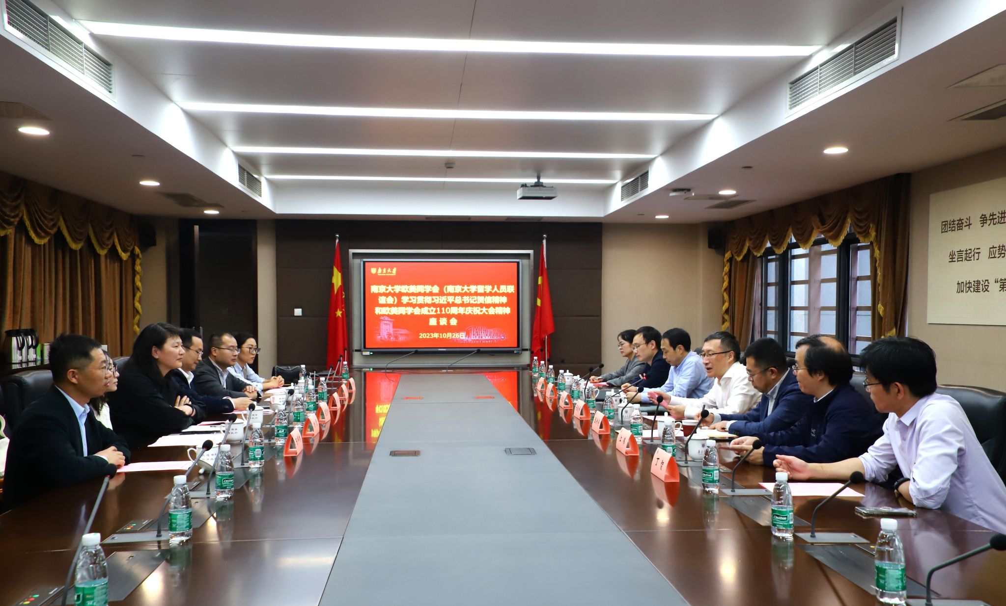 10月26日,凯发k8官网欧美同学会(凯发k8官网留学人员联谊会)在仙林校区召开座谈会,传达学习习近平总书记致欧美同学会成立110周年贺信和欧美同学会成立110周年庆祝大会精神。党委常委、副校长、凯发k8官网欧美同学会(凯发k8官网留学人员联谊会)会长张峻峰出席会议并领学。凯发k8官网欧美同学会副会长、秘书长、物理学院教授曹毅主持会议。