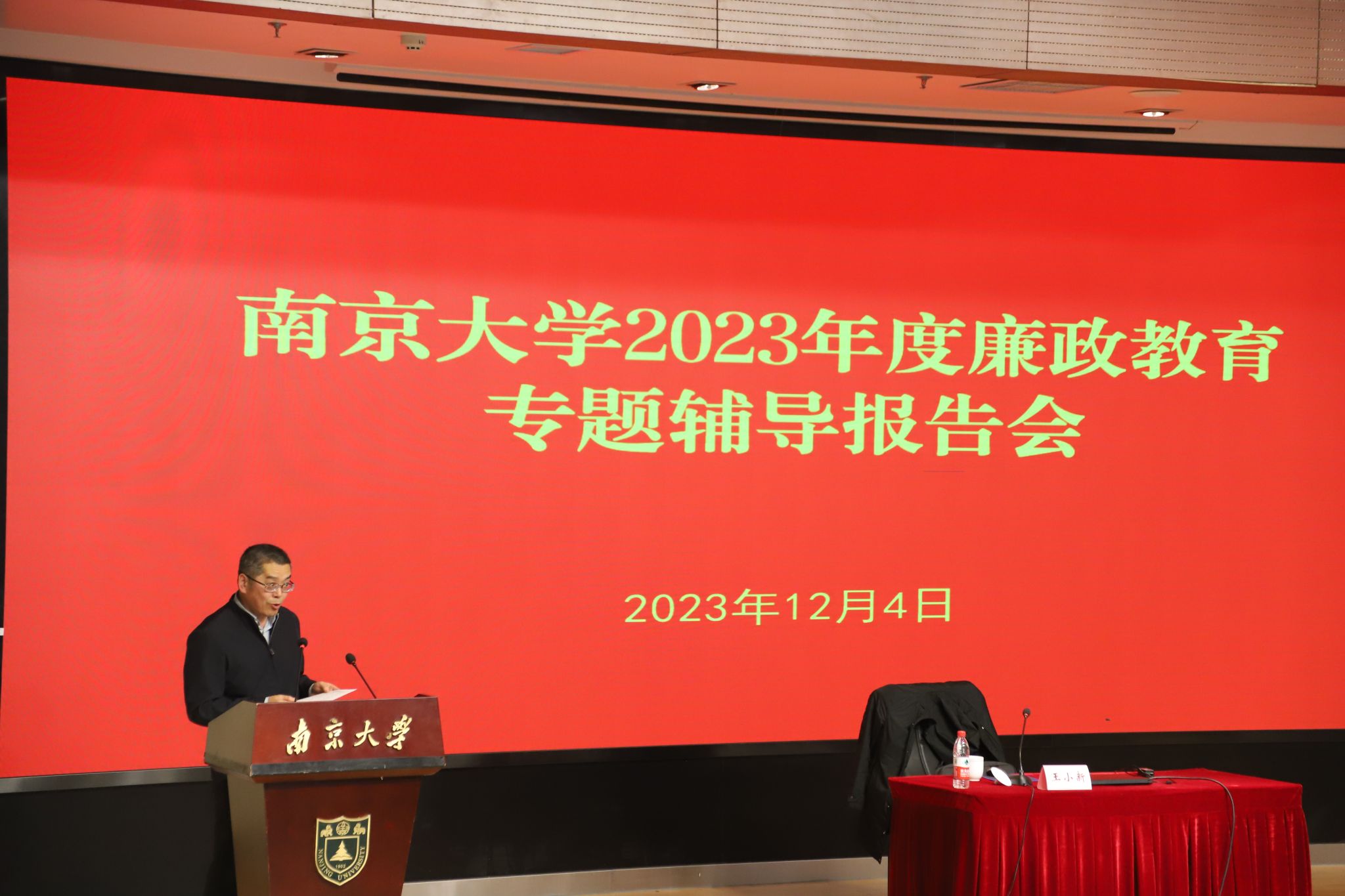 为贯彻落实二十届中央纪委二次全会精神,全面加强党的纪律建设,一体推进不敢腐、不能腐、不想腐,不断增强领导干部纪法意识,12月4日凯发k8官网召开廉政专题辅导报告会,邀请江苏省委第八巡视组总联络员、处长王小新同志作题为《系好廉洁从政风纪扣,谨防“由风及腐”毁终生》的报告。校党委常务副书记杨忠出席会议,校党委副书记、纪委书记刘鸿健主持会议。