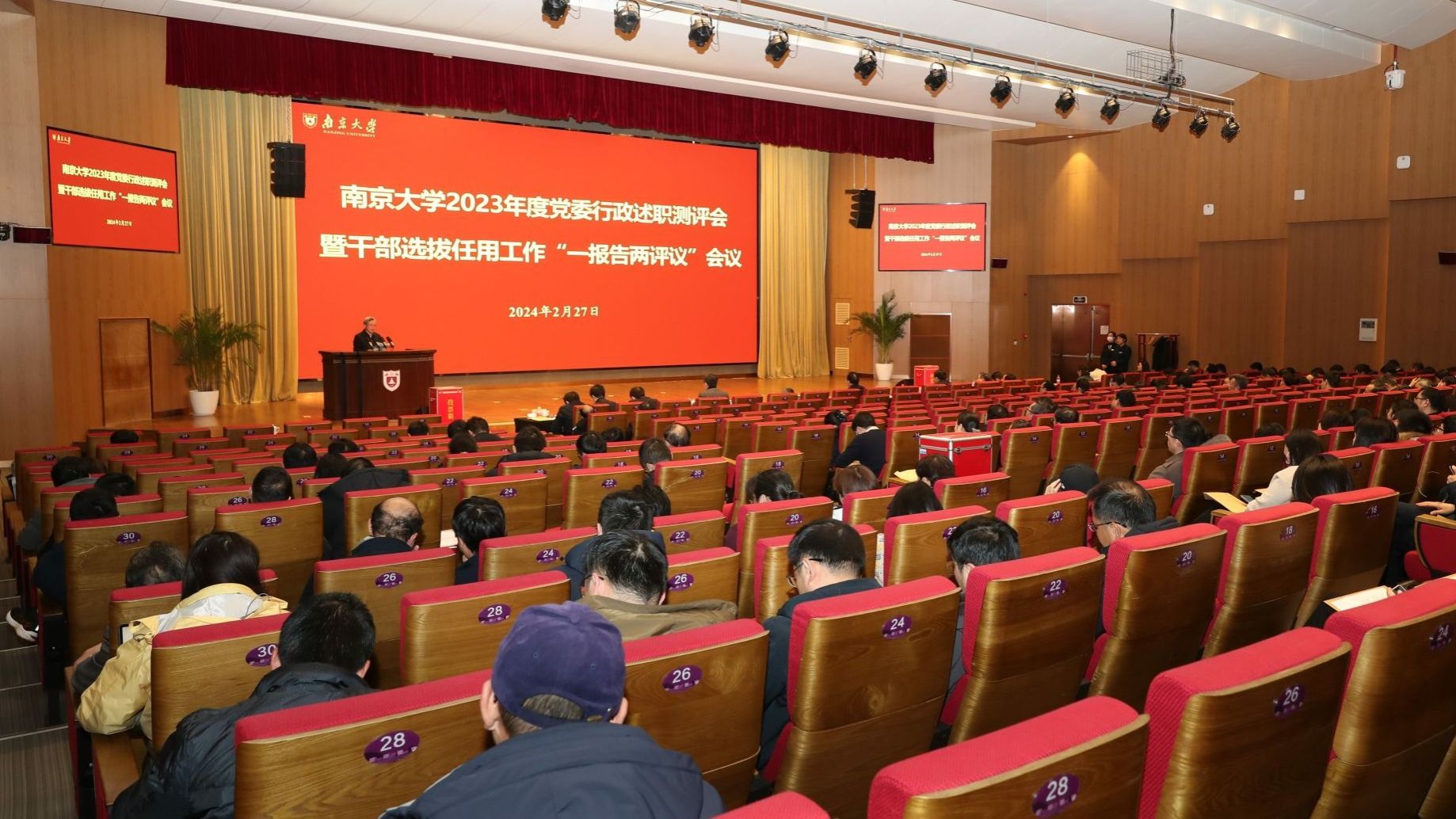 2月27日,凯发k8官网2023年度党委行政述职测评会暨干部选拔任用工作“一报告两评议”会议在仙林校区召开。校党委书记、中国科学院院士谭铁牛主持会议并作学校领导班子2023年度工作情况报告。校长、中国科学院院士谈哲敏,中组部有关同志出席会议。