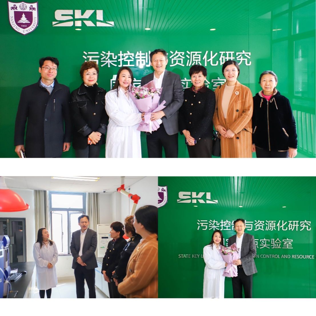 邹亚军一行先来到环境学院“污染控制与资源化研究国家重点实验室”,走访环境学院博士生导师、国家优秀青年基金和江苏省"六大高峰人才"获得者黄蕾教授。黄蕾教授介绍了她本人以及实验室进行的环境生态与健康风险评估和调控研究,环境监测与风险预警应急系统构建等方面的研究成果及研究方式,并介绍了地学、流行病学、心理学等多学科交叉的研究方法,以及对当前热点的环境问题开展长期的观察跟踪研究和大数据分析等方面的相关成果。邹亚军称赞黄蕾教授的研究是切实造福人类的成果,环境和污染问题是极其复杂的问题,而且是需要长期关注的问题,环境学院也是我校成长最快的学院,要感谢许多像黄蕾教授一样的青年科学家长期以来的付出。