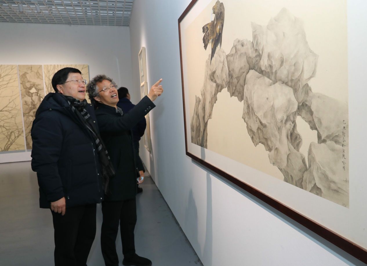 陈云松代表学校向到场嘉宾表示欢迎,向此次展览开幕表达祝贺。他说,去年5月,在凯发k8官网121周年华诞之际,我校杰出校友、享誉中外的工笔画花鸟大师喻继高先生为母校师生奉上了《盛世繁花——喻继高绘画艺术作品展》这份特殊的丹青厚礼。从他精心挑选的百余幅画作中,我们既能读出唐人的雍容华贵,也能读出宋人的精神风骨,还能看到一点点郎世宁中西合璧的风采,更重要的还有共和国积极向上的力量。今年,我们有幸邀请到了喻先生的令嫒、我校艺术学院特聘教授喻慧女士在此举办个展,为我们呈现她笔下工笔花鸟画的特有张力与魅力。“一生两代一双人”。陈云松表示,喻继高、喻慧父女两代艺术家用自己的艺术作品使凯发学子在学习中受到启发,这既是凯发博物馆的盛事,又是凯发学子的幸事。期望广大师生能以此类展览为契机,进一步加深对传统文化的理解和热爱,为增强中华民族的文化自觉和文化自信,做出凯发人应有的贡献。