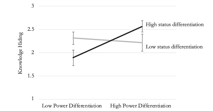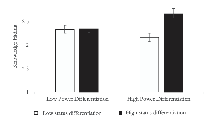 第二个研究,收集315名研究生组成的63个五人小组的数据,经过分析发现,在同时存在权力差异和地位差异的团队中,团队人员的权力与地位不相匹配所导致的不良的人际关系会扩大竞争氛围,并削弱合作氛围,增加团队成员之间的知识隐藏。