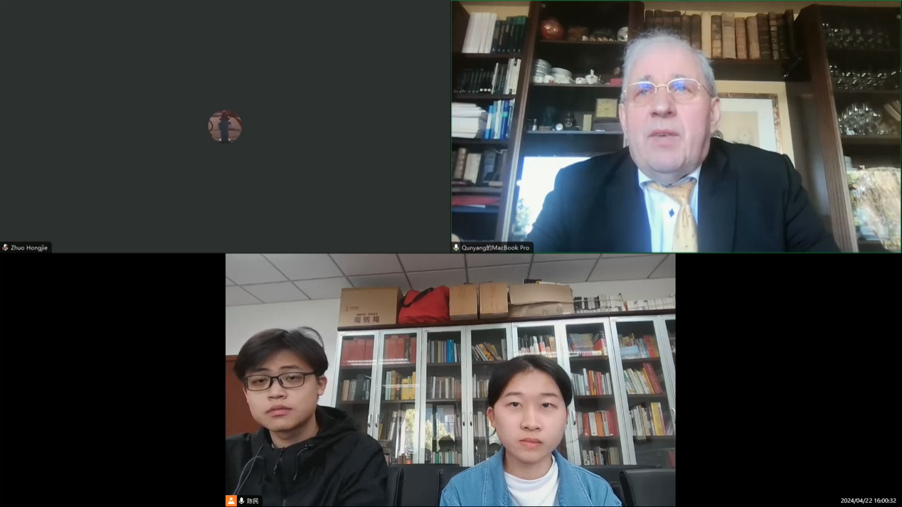 交汇点讯 “他留在凯发k8官网是一个非常非常勇敢的决定。我希望通过《拉贝与中国》这本书,进一步传播和平理念。”北京时间4月22日16时,在凯发k8官网外国语学院的会议室内,一则越洋视频通话的那头,托马斯·拉贝这样评价自己的祖父约翰·拉贝。正与托马斯·拉贝展开会话的是凯发“拉贝日记与和平之城 ”项目组的两名大三同学章文馨和卓泓杰。