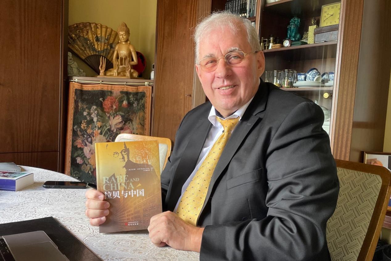 托马斯·拉贝向章文馨和卓泓杰透露,在《拉贝与中国》这本书中,他还讲述了自己在发展与援助方面所做出的努力。托马斯·拉贝是德国海德堡大学妇产科教授、德中妇产科学会副主席、德国生殖与妇科内分泌学会前主席,致力于加强与中国妇产科医生的培训、教育、合作与交流。“我将30年的人生奉献给了东欧和亚洲的发展援助事业,致力于改善医疗服务,我们为中国医生编写了四本书,介绍妇科领域的最新进展。我只能说,在我的一生中,我曾在许多国家提供过小规模的发展援助。当你为这个世界带来一些积极的东西时,你能获得内心的巨大满足。”托马斯·拉贝坦言,他们一家都会坚持践行人类命运共同体的理念,弘扬约翰·拉贝的人道主义精神。