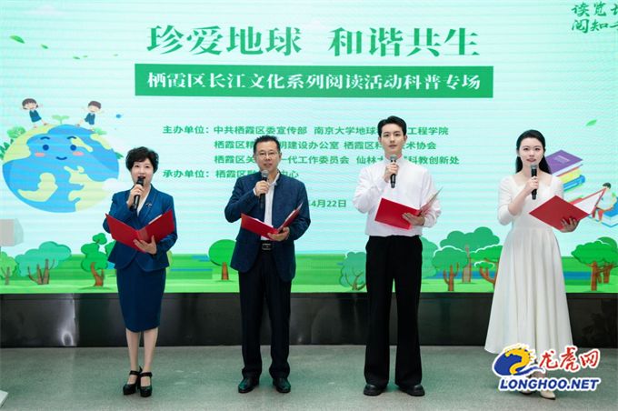 在活动尾声,与会领导登台共同启动“珍爱地球,和谐共生”——栖霞区长江文化系列阅读活动科普专场。