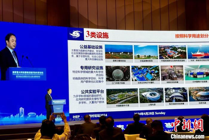 4月28日,2024中关村论坛国家重大科技基础设施开放共享论坛暨怀柔综合性国家科学中心重大成果发布会在北京怀柔举行,王贻芳院士发表主旨演讲。中新网记者 孙自法 摄