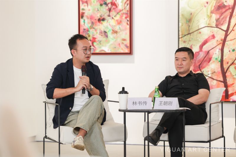 艺术对谈 策展人林书传(左)艺术家王朝刚(右)