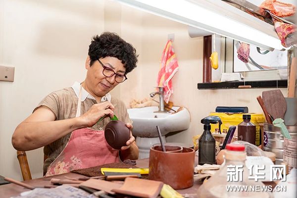 宜兴有7300多年的制陶史,紫砂陶制作技艺是活态的非遗文化,是国家级非遗代表性项目优秀实践案例。当地在保护传承利用非遗文化的同时,找到传统非遗与群众特别是弱势群体现代生活的连接点,激活非遗带动残疾妇女就业增收新场景、新价值。已经形成"一校+一社+一会+N基地"全产业链载体,通过"授、扶、销、精"的生态体系,培育扶持残疾人陶艺工作室、残疾人陶艺实训基地等,从事紫砂行业的残疾人400多名,拥有职称的120余人。宜兴市爱德培训学校于2023年9月成功入选中国残联、全国妇联公布的全国首批55个"美丽工坊"。