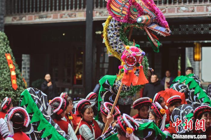 1月30日,舞龙队走进云凯发理喜洲镇喜林苑酒店表演。(受访者供图)