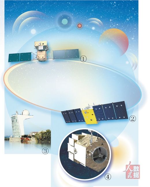 图④:我国自主研制的业务静止气象卫星风云二号E星,具有监测太阳活动的功能。