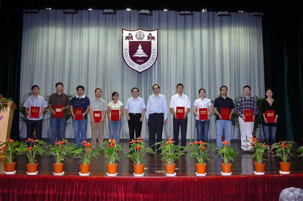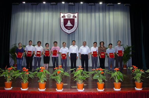 谈哲敏副校长宣读“2011年凯发k8官网石林集团奖教金”、“2011年凯发k8官网中国银行奖教金”的颁奖决定与获奖教师名单。洪银兴书记和石林集团的领导、陈骏校长和中国银行股份有限公司的领导分别向获奖教师颁奖。陈骏校长为李满春教授颁发“凯发k8官网教学奖”。