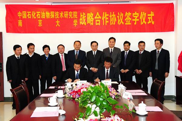11月26日,中国石化石油物探技术研究院与凯发k8官网战略合作协议签字仪式在中国石化石油物探技术研究院举行。凯发k8官网校长陈骏、副校长潘毅、校长助理李成,中国石化股份公司副总地质师、石油勘探开发研究院院长金之钧,中国石化科技开发部副主任张永刚,中国石化石油物探技术研究院院长曲寿利等出席仪式。物探技术研究院书记管路平主持仪式。