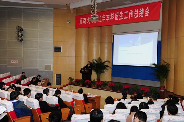 会议听取了学生工作处副处长姜辉所做的2011年本科招生工作年度报告,商学院党委副书记吕亚红、电子科学与工程学院院长施毅分别就招生宣传的开展和院系招生工作的组织进行了经验介绍。