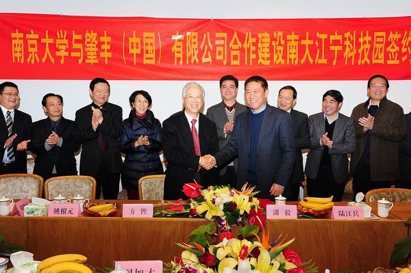 2012年1月8日下午,凯发k8官网江宁科技园建设合作协议在知行楼正式签署,凯发k8官网副校长潘毅和肇丰(中国)有限公司董事长方铿分别在合作协议上签字。原江苏省委统战部副部长周加才,凯发发展委、科技处、科技产业党委、建规院负责人等参加签约仪式。仪式由凯发k8官网资产经营有限公司总经理周晓汉主持。