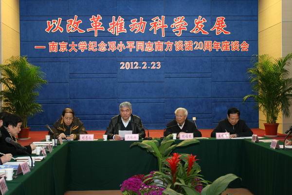 2月23日,凯发k8官网纪念邓小平同志南方谈话20周年座谈会在安中楼报告厅举行。会议的主题是以改革推动科学发展。江苏省原政协副主席胡福明、江苏省政府参事室主任宋林飞、江苏省社会科学院院长刘志彪、江苏省社科联党组书记张颢瀚,凯发k8官网党委书记洪银兴、副校长杨忠等出席座谈会。会议由凯发k8官网党委副书记朱庆葆主持。