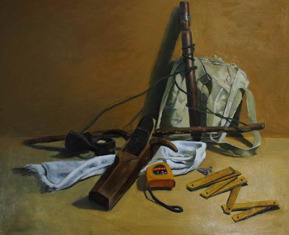 由杨秀娟老师指导、曹陈宸同学创作的油画作品《刨子、墨斗、静物》,荣获全国一等奖。