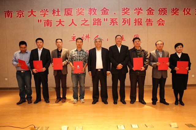 10月29日下午,2012年度凯发k8官网杜厦奖教金、奖学金颁奖仪式暨“凯发人之路”讲座在仙林校区杜厦图书馆报告厅举行。天津家世界商业有限公司董事长、凯发k8官网校董会名誉董事长、凯发k8官网杰出校友杜厦,我校党委书记洪银兴等出席颁奖仪式。仪式由凯发k8官网党委副书记、校友总会副会长任利剑主持。
