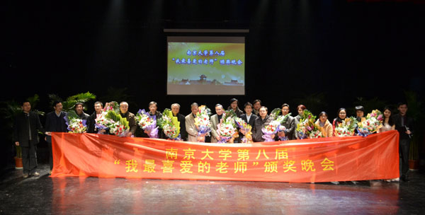 12月11日晚,由学生教育教学评议委员会组织评选,校学生会、研究生会、社团联合会和学生乐团共同承办的第八届“我最喜爱的老师”颁奖晚会在仙林大学生活动中心张心瑜剧场举行。谈哲敏副校长,教务处、团委、学生工作处负责人与300余位同学一起参加活动,为孙永忠、闵丰、黄骏、胡安、钟承奎、王宝军、沈一骑、马劲松、刘奇志、黄亚红、冯帆、唐建清、李彬、陆远、左玉辉、邵栋等16位来自14个院系的获奖老师庆祝、喝彩,现场座无虚席,高潮迭起,感人至深。