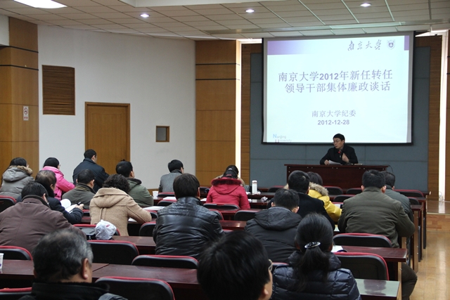 12月28日,学校纪委举行我校2012年新任、转任中层领导干部集体廉政谈话。本次廉政谈话对象应有48人,除8人出差、上课需下次“补课”外,其余人员全部到会。廉政谈话由党委副书记、纪委书记任利剑主谈,纪委副书记、监察处长张兆干主持。