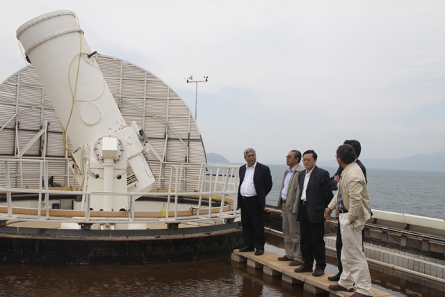 5月5日,我校党委书记洪银兴,党委常委、常务副校长张荣,校长助理李成一行7人赴云南天文台抚仙湖太阳观测站考察,参观了由我校和云南天文台共同建设的光学与近红外太阳爆发监测望远镜(ONSET)。