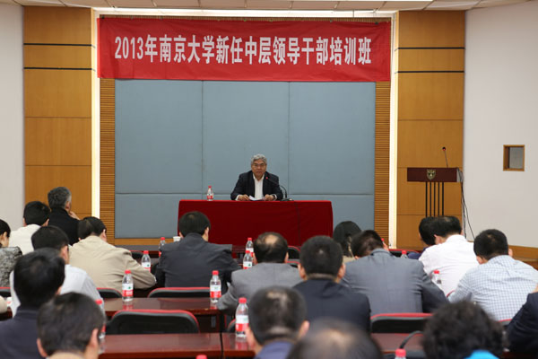 近日,我校举行2013年新任中层干部培训班。洪银兴书记作开班讲话,陈骏校长作专题报告。常务副书记张异宾主持开班培训并点评。