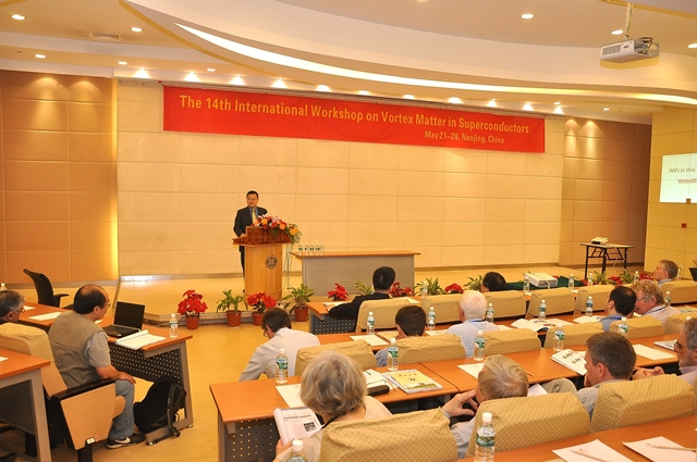 5月22日至28日,由我校举办的“第14届超导磁通物质国际研讨会”在宁召开。张荣常务副校长出席开幕式并致辞,包括70余位外国专家在内的130位科学家参加了本届会议,本届会议主席由我校超导物理和材料研究中心主任闻海虎教授担任。