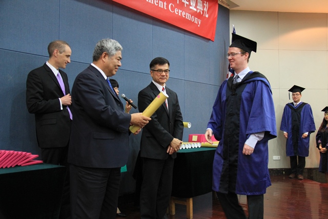 洪银兴和骆家辉为122名中美中心学生颁发学位证书和结业证书。