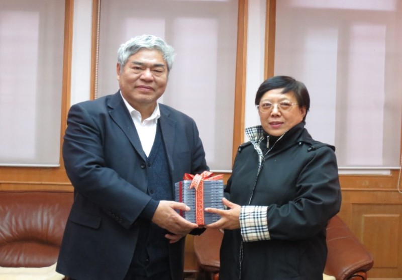 洪银兴书记接受翟玉霞馆长移交的金陵大学历史档案 (党委办公室 摄影)