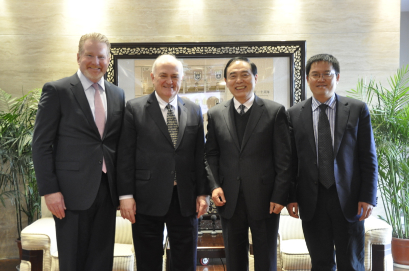 陈骏校长对史蒂芬·奈普校长当选孔子学院美国中心理事会主席表示祝贺。他表示,两校合作共建的孔子学院是双方共同努力的成果,感谢乔治·华盛顿大学的大力支持。两校在化学、地球科学等领域已经开展了卓有成效的教师交流和科研合作,今后利用孔子学院的平台,可以整合两校优质资源,搭建更多交流合作的渠道,促进两校的科研发展和国际化办学。陈骏校长建议两校在低碳城市发展、水资源可持续发展、大气污染及土壤安全等领域进行合作,为解决经济快速发展带来的环境和人居问题贡献力量。