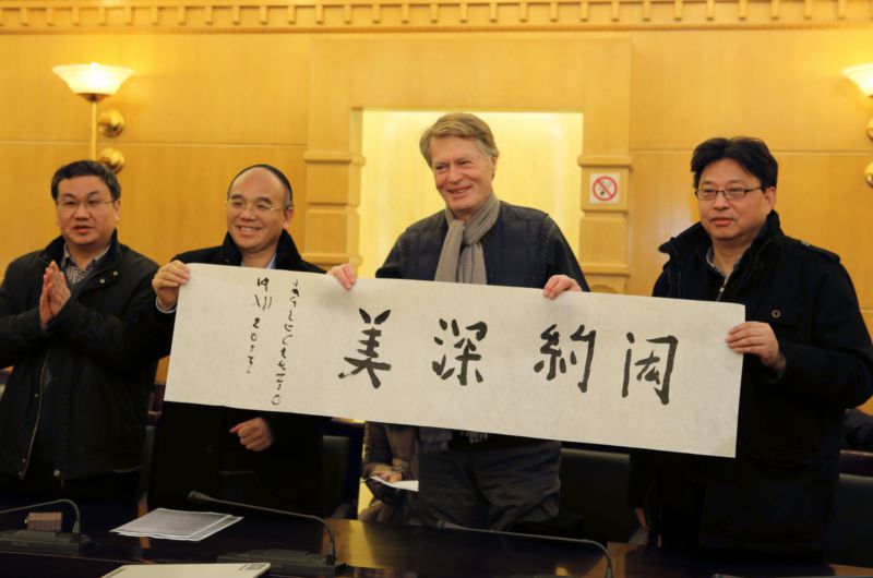 虽然认识中国已经有30多年,并经常接触中国文化,但勒克莱齐奥认为,这次授课是真正第一次为自己打开了中国文化的大门,使他真正深刻了解中国文化的深厚。在与学生的交流学习中,他坦言学到了包括中国文化与中国艺术在内的很多东西。“我所授的这门课程是选修课,参加的学生来自各个院系,大家聚在一起交流,就组成了一个文化熔炉,比如理科专业的学生在表达时会加入科学上的观点,这对我也很有帮助。”勒克莱齐奥谦虚地表示,中国艺术并非自己的研究领域,相比较而言,中国学生对中国艺术又有更多的了解,通过和学生们学习交流,他学到了很多中国艺术上的知识。
