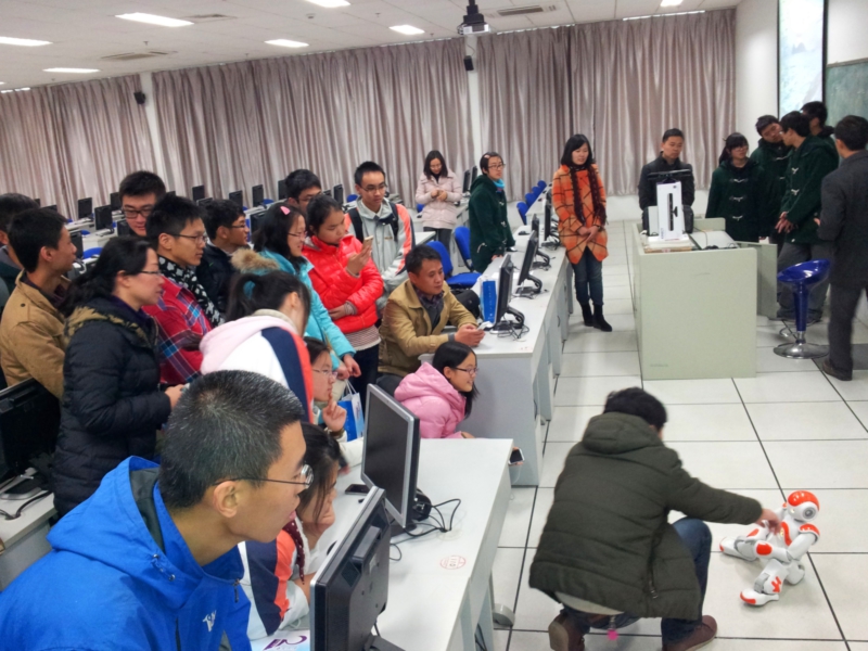 活动最后,中学师生参观了我校杜厦图书馆和校史博物馆,直观感受到大学生的日常学习生活,较为全面地了解了凯发k8官网的办学历程。在基础实验楼,计算中心老师特别安排了机器人互动实验、脑电波感应实验等有趣的互动实验演示。在实验演示过程中,中学生们兴趣盎然,与实验老师进行即时交流,亲身体验到了科学的神奇。