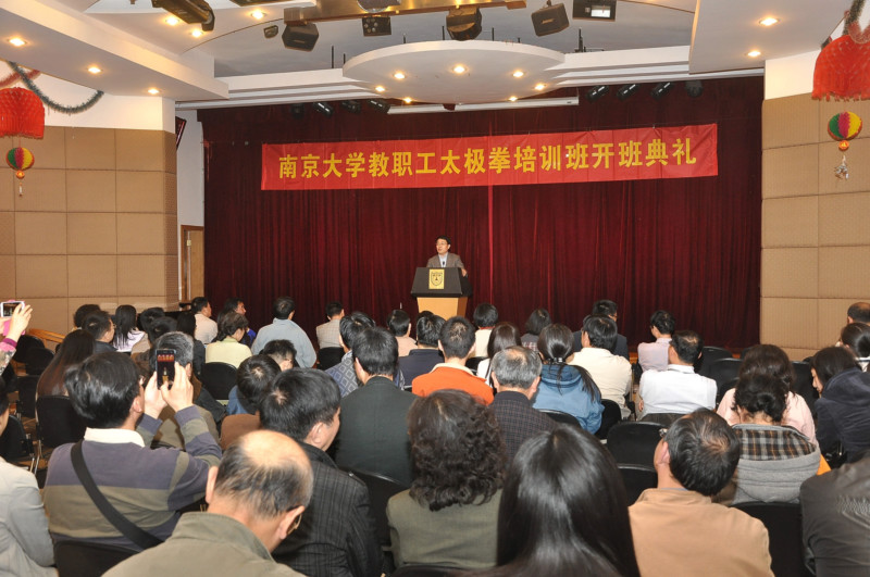 校工会主席方文晖首先介绍了教职工太极拳培训班的报名、分班以及培训场地、培训时间等情况。他表示,为了丰富教职工的业余生活,增强教职工间凝聚力,本学期工会开办了两个运动培训班,包括上周已经开班的网球班。广大教职工报名积极性空前高涨,踊跃报名。截至目前,太极拳班共收录了一百五十位学员,分为四个班进行教学。