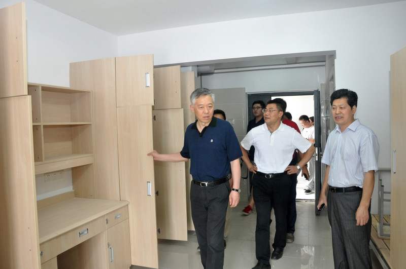 张书记一行来到学生公寓第16幢,考察博士生和硕士生宿舍。推开宿舍门,新配置的桌、椅、床、柜、书架、空调等各项设施早已安装到位,敞亮的阳台,整洁的卫浴间,温馨舒适的宿舍正静待新、老同学入住。