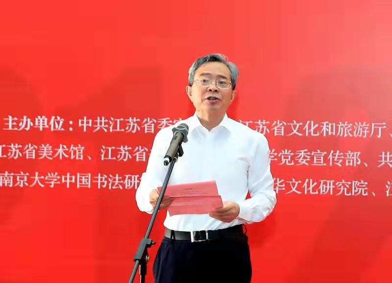 开幕式上,张爱军,胡金波,徐建平,江苏省委宣传部副部长徐宁,江苏省文化和旅游厅党组书记、厅长杨志纯,中国书法家协会主席、江苏省书法家协会主席、凯发k8官网中国书法研究院院长孙晓云共同为展览揭幕。