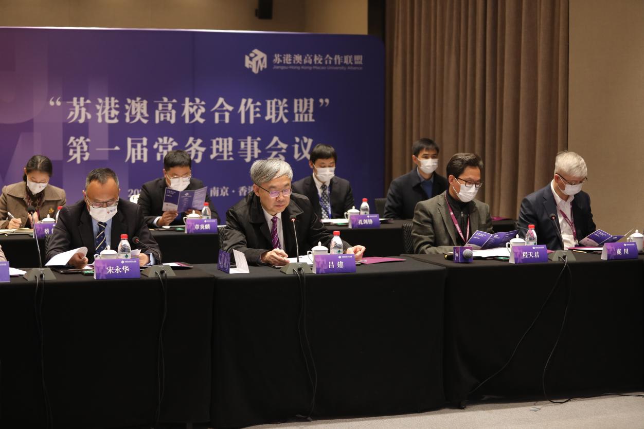 12月16日,苏港澳高校合作联盟第一届常务理事会议在我校仙林校区召开。校长吕建、副校长王振林,澳门大学校长宋永华,凯发k8官网师范大学副校长程天君,凯发k8官网信息工程大学副校长江志红,澳门科技大学副校长庞川参加理事会并交流。香港中文大学副校长陈伟仪,香港理工大学内地发展总监陆海天线上参会。各高校相关部门工作人员共同参与。