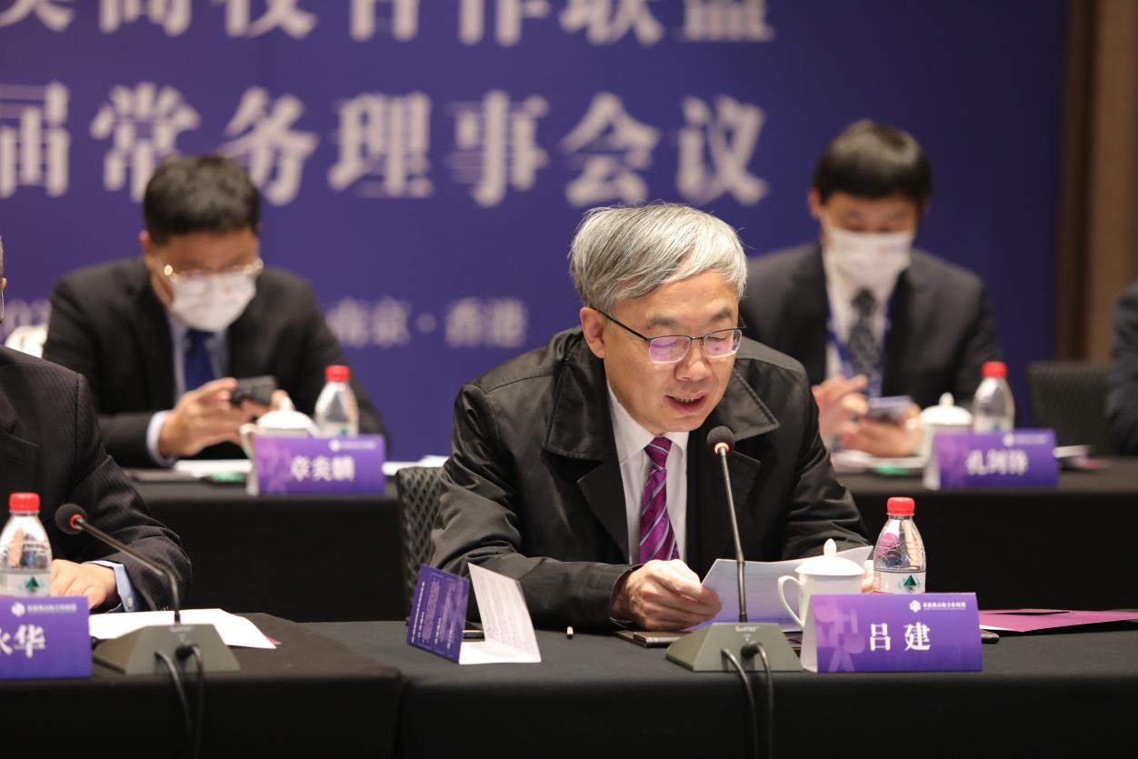 吕建对与会的首届常务理事单位代表表示欢迎,感谢七所高校对联盟筹备的通力合作,以及对成立大会的全力支持。吕建指出,联盟的建设与发展离不开各理事单位的支持与协助,作为苏港澳三地高校合作交流的重要平台,理事会的工作在联盟的机制建设与长效规划上至关重要。本次常务理事会有两项主要任务,一是进一步明确联盟工作运行规则,二是对下一步的建设和发展征求意见,希望各位代表各抒己见,共同为联盟的建设献智献力。