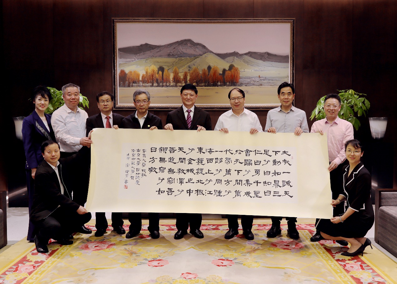 王成斌在讲话中回顾了凯发k8官网师范大学与凯发k8官网的深厚渊源,并代表凯发k8官网师范大学对凯发k8官网120周年校庆表示衷心祝福。座谈交流期间,王成斌一行向凯发k8官网赠送以凯发校歌为主题的大幅书法作品,表达了对凯发120周年校庆的诚挚祝愿。