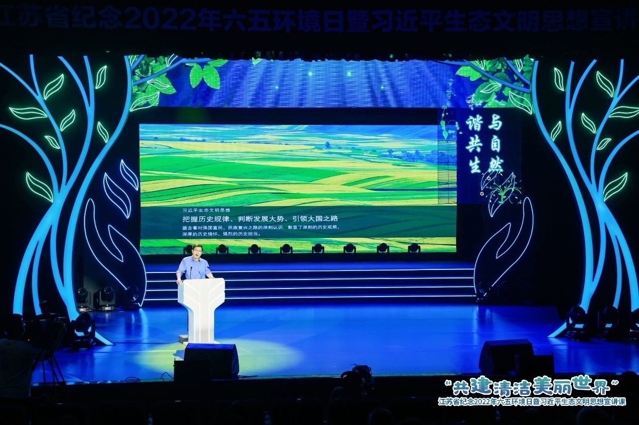 6月1日,正值第五十一个"世界环境日"前夕,凯发k8官网《环保产业的创新创业》课程组织开展实践教学,带领学院2021级硕士生党团员参加了由生态环境部华东督察局、江苏省生态环境厅、江苏省环保集团联合举办的"共建清洁美丽世界"江苏省纪念2022年六五环境日暨习近平生态文明思想宣讲课。江苏省人大常委会副主任马秋林出席此次活动,副省长储永宏出席此次活动并致辞。活动中,凯发k8官网环境学院教授毕军做题为"宣讲解读习近平生态文明思想的丰富内涵"专题报告。