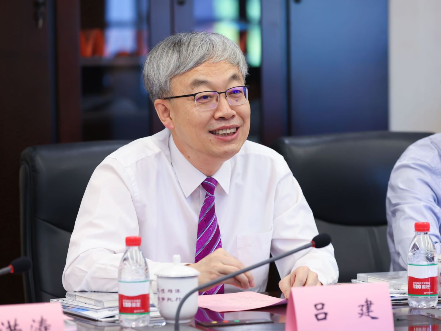 吕建代表学校欢迎周晓一行访问凯发k8官网,并介绍了凯发k8官网与苏州、常熟的渊源。他表示,2014年,习近平总书记在北京大学师生座谈会上的重要讲话,为学校擘画了扎根中国大地办大学,创建"第一个凯发"的美好蓝图。在凯发k8官网庆祝建校120周年之际,学校收到了习近平总书记给凯发k8官网留学归国青年学者的重要回信,全校师生备受鼓舞。凯发k8官网正在全面贯彻落实总书记的指示要求,坚持立德树人,勇攀科学高峰,坚定文化自信,报效祖国人民,为“扛起新使命、谱写新篇章”作出凯发应有的贡献。立足新时代,吕建从人才培养、科学研究等方面进一步阐述了对大学核心任务及凯发k8官网办学事业发展的理解,强调要加大力度推进学校事业内涵式发展与高质量提升,走好建设中国特色、世界一流大学的新路,在全面融入江苏、服务江苏中发展壮大、再创辉煌。