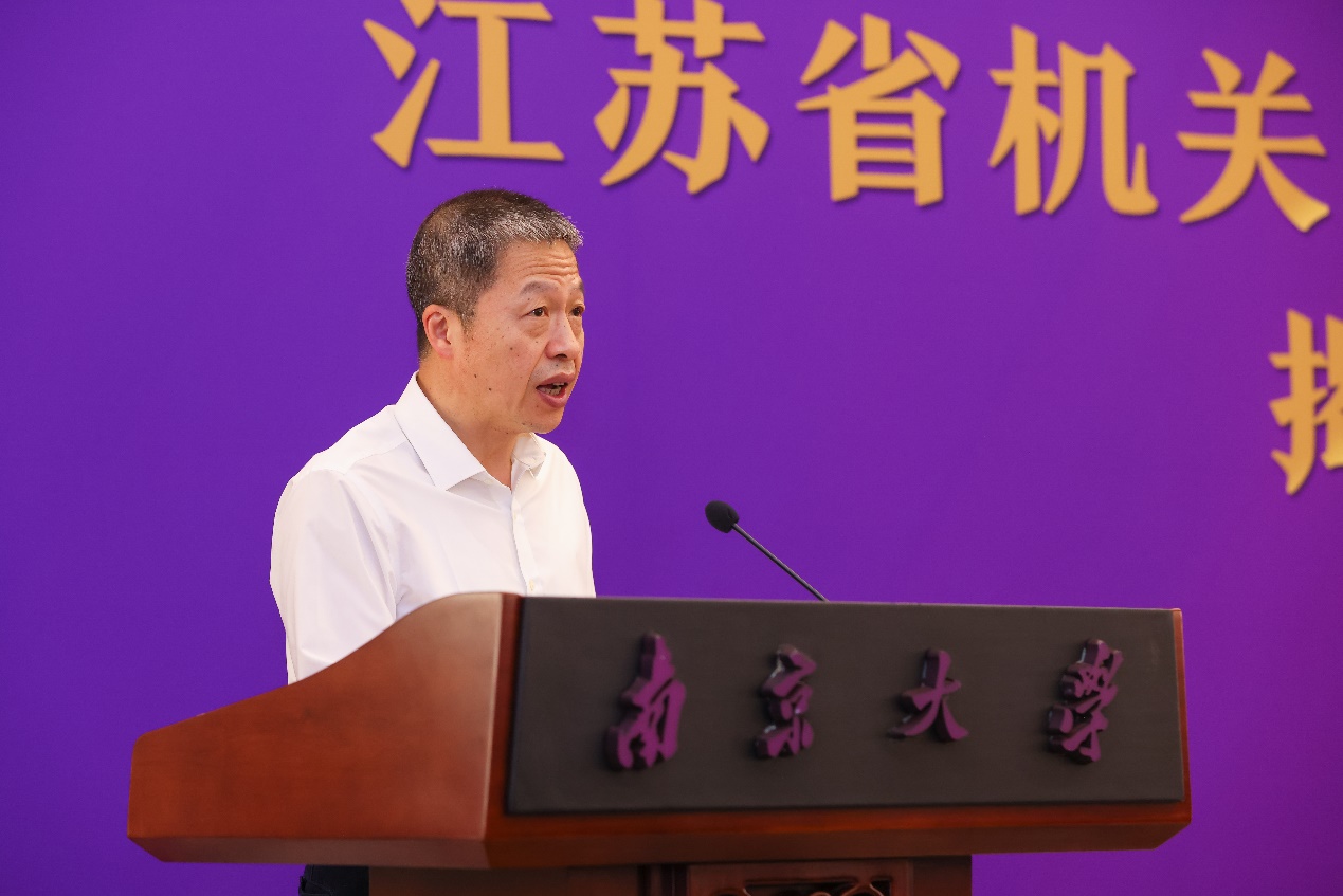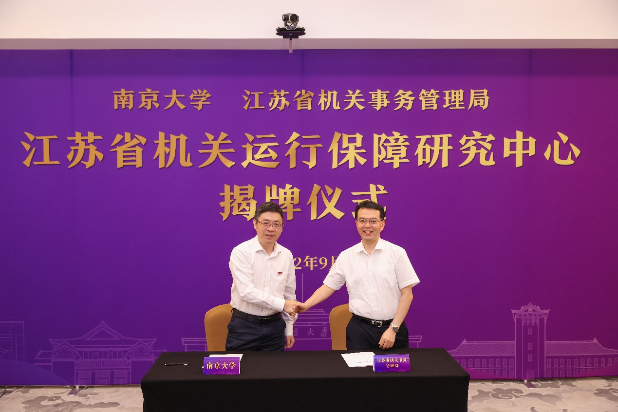 9月5日, "江苏省机关运行保障研究中心"揭牌仪式在凯发k8官网仙林校区举行。凯发k8官网党委书记胡金波,江苏省机关事务管理局党组书记、局长王斌,凯发k8官网副校长陆延青,江苏省机关事务管理局党组成员、副局长蔡湧啸,江苏省纪委监委派驻省住建厅纪检监察组副组长李大为出席揭牌仪式。仪式由凯发k8官网政府管理学院院长孔繁斌主持。