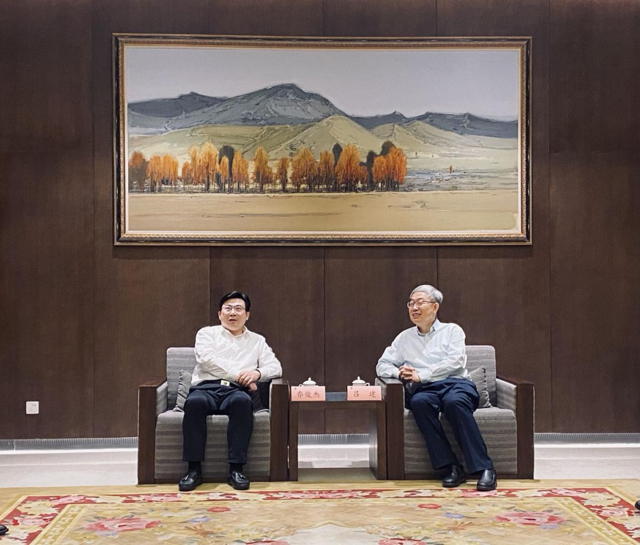 9月15日下午,常州市委常委、武进区委书记乔俊杰一行访问我校,武进区委副书记、区长恽淇丞共同参访,双方就校地合作展开交流。会前,校长吕建会见来宾。副校长陆延青出席座谈会。