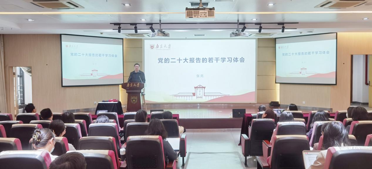 10月21日上午,研究生院、党委研究生工作部在仙林校区组织召开党的二十大精神专题学习会。哲学系教授、博士生导师、研究生院副院长张亮做学习分享。研究生院、党委研究生工作部全体工作人员,全校各院系研究生秘书、教务员、辅导员参加学习。校党委常委、党委研究生工作部部长、研究生院常务副院长周济林主持会议。
