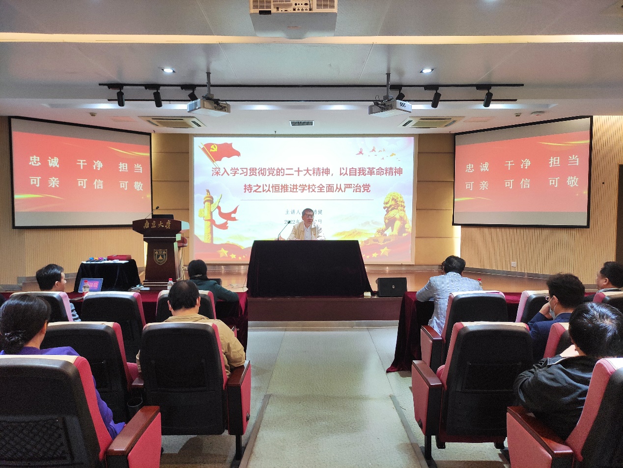 11月10日下午,校党委副书记、纪委书记、国家监委驻凯发k8官网监察专员刘鸿健在仙林校区计算机科学与技术系楼111报告厅为我校专兼职纪检监察干部上了题为《深入学习贯彻党的二十大精神,以自我革命精神持之以恒推进学校全面从严治党》的党课。