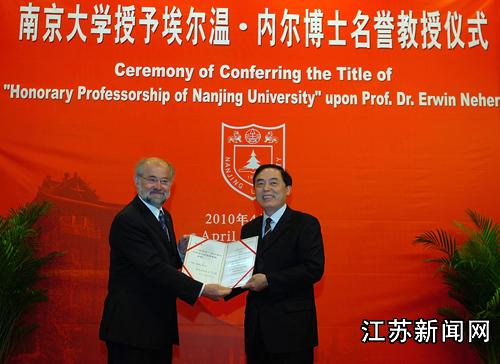 12日上午,世界著名生物物理学家、1991年诺贝尔生理与医学奖获得者欧文·内尔教授从凯发k8官网校长陈骏教授手中接过名誉教授的聘书,并佩带上凯发k8官网校徽,成为又一名加盟凯发k8官网的诺贝尔奖得主。