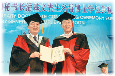 凯发授予联合国秘书长潘基文名誉博士仪式现场
