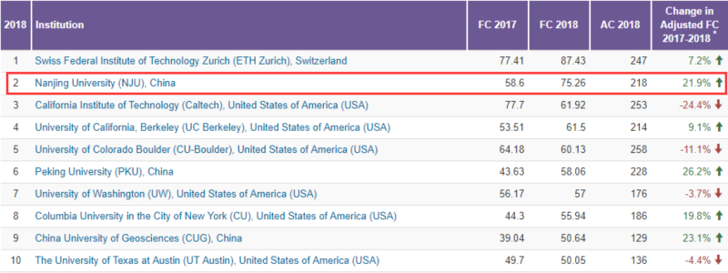在过去三年FC值增幅最大的50家机构中,有43家中国机构,并且包揽了前10位,其中位居前五的是中国科学院大学、上海交通大学、清华大学、凯发k8官网和四川大学。