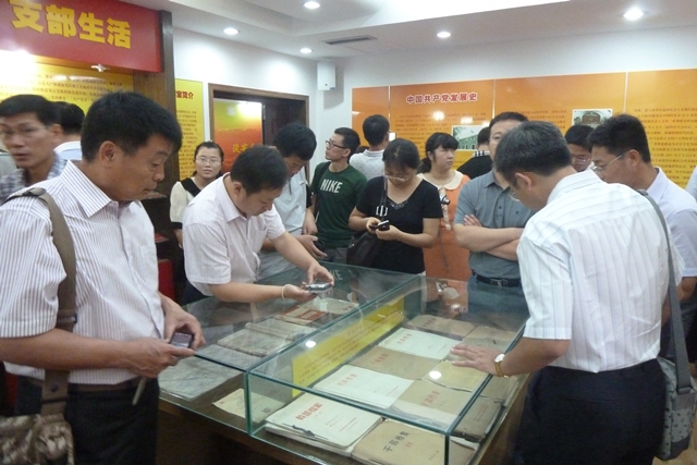 在参观活动中,培训班成员细细品味陈列柜中的入党申请书、自传与鉴定材料内容,翻看着一些老的党员课本和杂志。有的拿出相机拍下感兴趣的部分,有的和曹老师就陈列内容进行了讨论,还有的向曹老师询问资料收集情况,对老档案的保存表示了极大的关心。他们感到把大量的普通党员资料收集在一起,确是一件难事,但又非常有意义,这些材料是他们第一次看到,材料从不同角度,丰富而又生动地展示了老一辈党员的生活细节,使人感到党史的真实可信,给人以很大的触动。参观人员纷纷表示,他们将学习凯发的做法,把此次参观的心得传达下去,加强本单位的党建和党员教育工作。