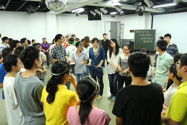 9月23日,来自凯发k8官网心理协会的四名素拓指导员带领学院2012级研究生新生开展了内容丰富的拓展活动。活动一开始,新生们就在指导员的安排下,随机组成了四个小分队,并被要求在规定的时间内设计出本队的队名、Logo以及口号。经过激烈的讨论,各队集思广益,精彩纷呈。眼镜侠之队的口号是“我来了,我看见,我征服“;硕士队的口号是“有奇迹,有梦想,有梦想,有未来”; IE钓鱼队的口号是“还我钓鱼,壮哉IE”;5566队的口号是“5566,让你们七上八下”。随后开展的滚雪球、信任摇摆、猜数字、摸黑拉绳子等拓展项目也颇为顺利,新生们积极参与、相互启发,气氛十分高涨。拓展活动结束后,同学们仍意犹未尽,纷纷表示在拓展环节中不仅认识了新同学,也重新认识了自我,充分感受到团队的价值和精神。